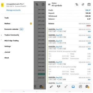 $ 499$ 14Mrsuperbot MT4 is a powerful Gold (XAUUSD) trading EA designed for M5 and higher timeframes. Works best between 2 AM – 12 PM, requiring no manual adjustments. Simply install, activate your license, and enable AutoTrading. Recommended capital: $1000 for 0.01 lots or a cent account for lower budgets.