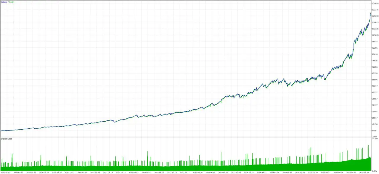 The EA continuously processes large volumes of price-wave data, dynamically adapting entry timing and trade management based on evolving gold market conditions.
