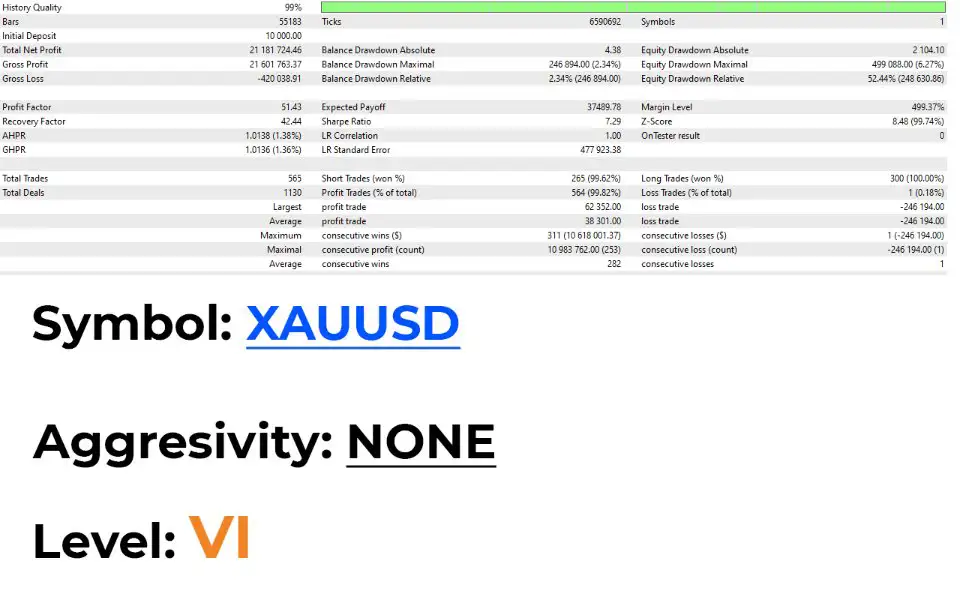 - High-Volume Trading and Matrix Factorization: The advisor leverages high-volume trading strategies and matrix factorization techniques, delivering excellent results on currency pairs such as EUR/USD, USD/JPY, and XAU/USD (Gold).