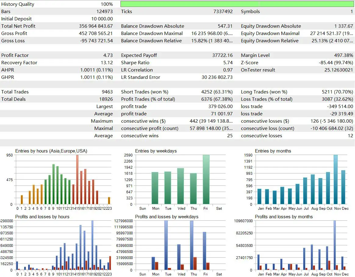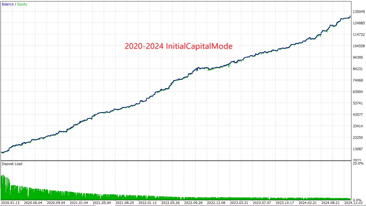 The EA uses a scaling strategy to add positions to profitable trades, ensuring higher returns during trending markets while effectively reducing losses during periods of market stagnation.