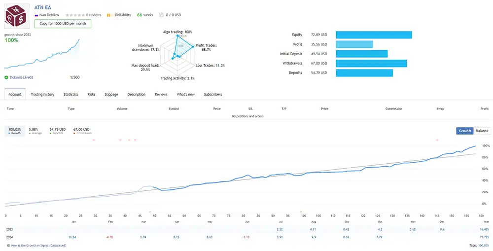 - Risk Management: Always utilizes Stop Loss and Take Profit for controlled trading. No risky strategies like martingale or grid are used.