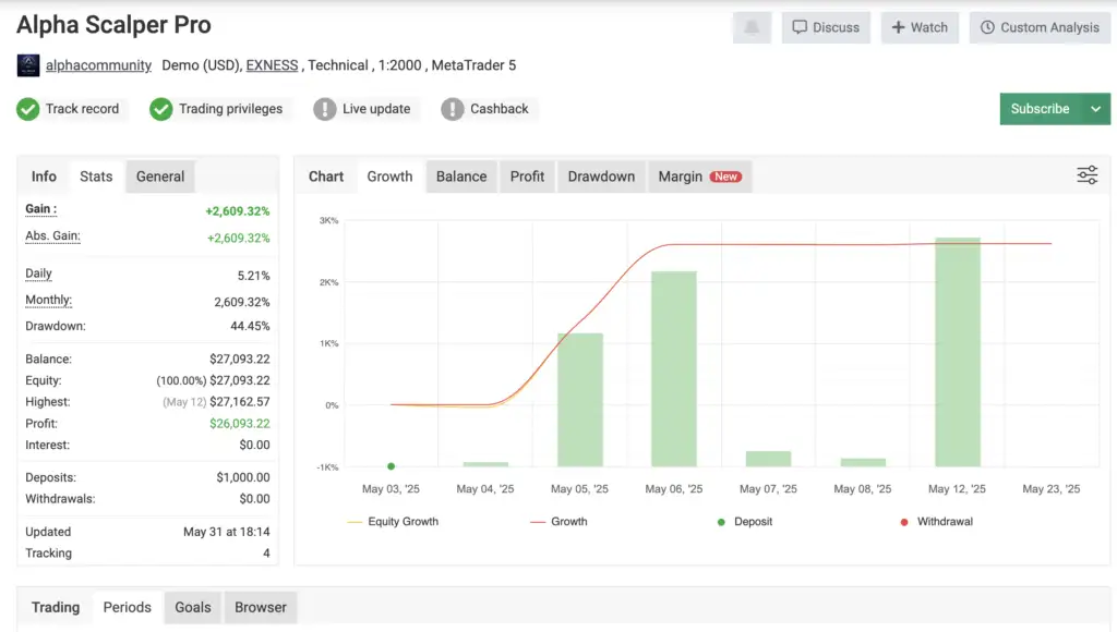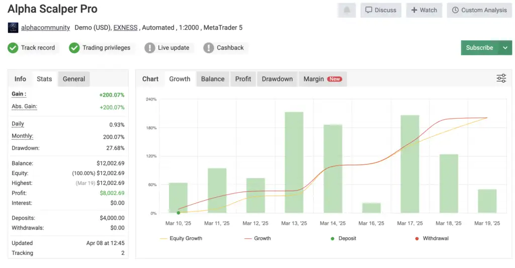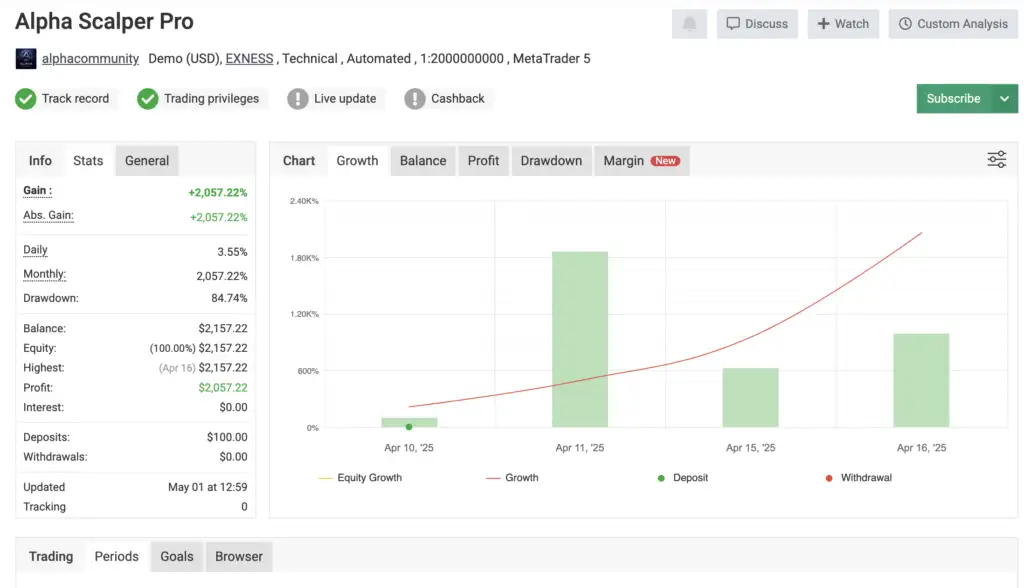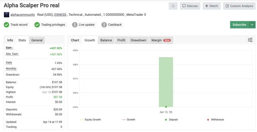 If you’re ready to move past emotional trading and embrace AI-powered gold scalping, Alpha Scalper Pro MT5 is your ultimate trading partner. With its low drawdown, prop firm compatibility, and rapid account growth potential, this Expert Advisor is a must-have for serious traders.