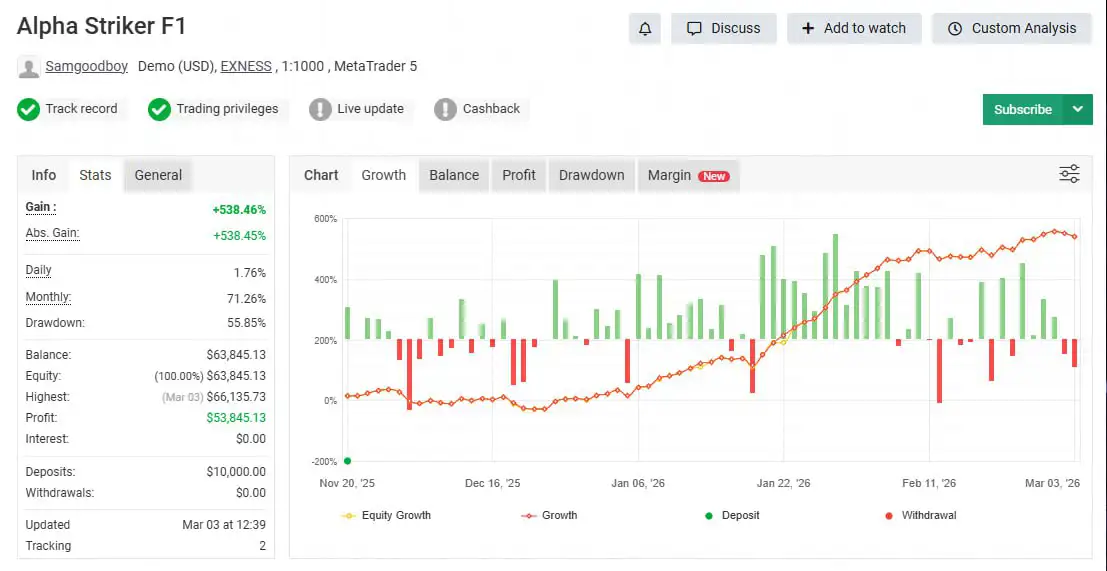Both gold and cryptocurrency markets are known for their unpredictability and sharp price fluctuations. Alpha Striker F1 MT5 is engineered to perform effectively under these conditions.