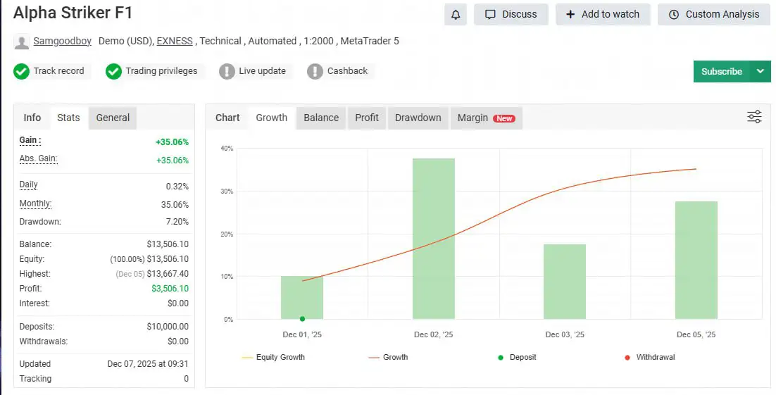 Unlike many traditional trading bots, Alpha Striker F1 MT5 emphasizes structured performance and strict risk control, making it a reliable solution for traders seeking long-term stability rather than short-term speculation.