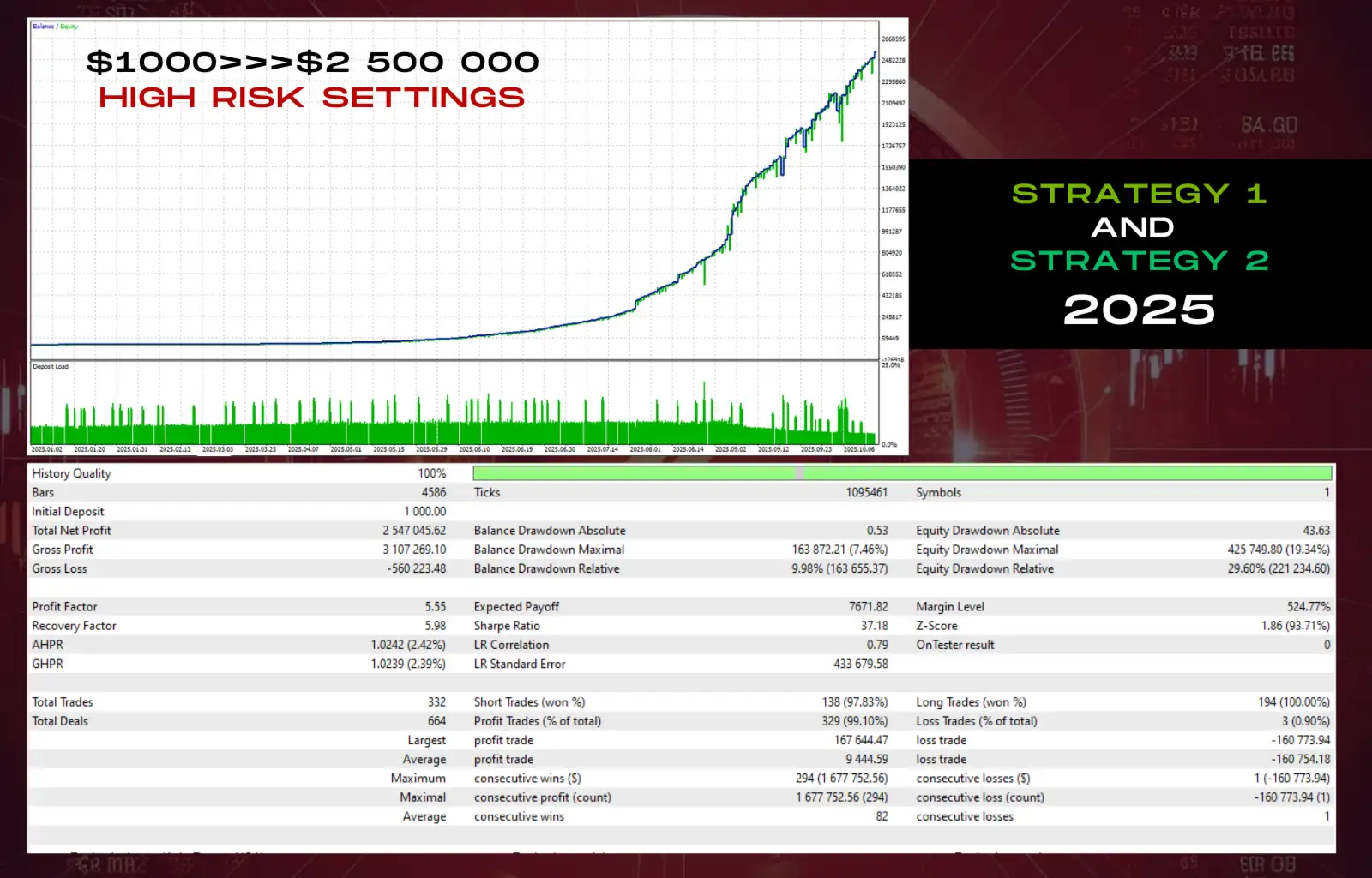 Past performance does not guarantee future results. No trading system is immune to losses. Backtests and historical performance are provided for illustrative purposes only. Always apply proper risk management and test the EA on a demo account before deploying it on a live trading account.