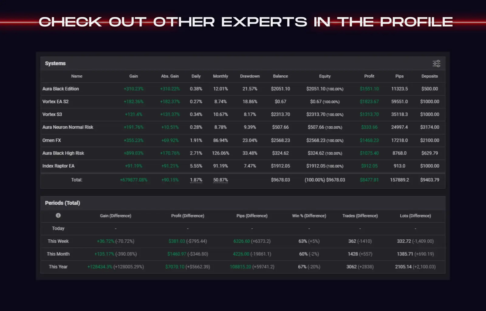By combining multiple strategy cores within a single neural framework, Aura Ultimate reduces dependency on any single market behavior. This approach enhances adaptability, smooths equity curves, and improves long-term consistency for both private traders and funded account users.