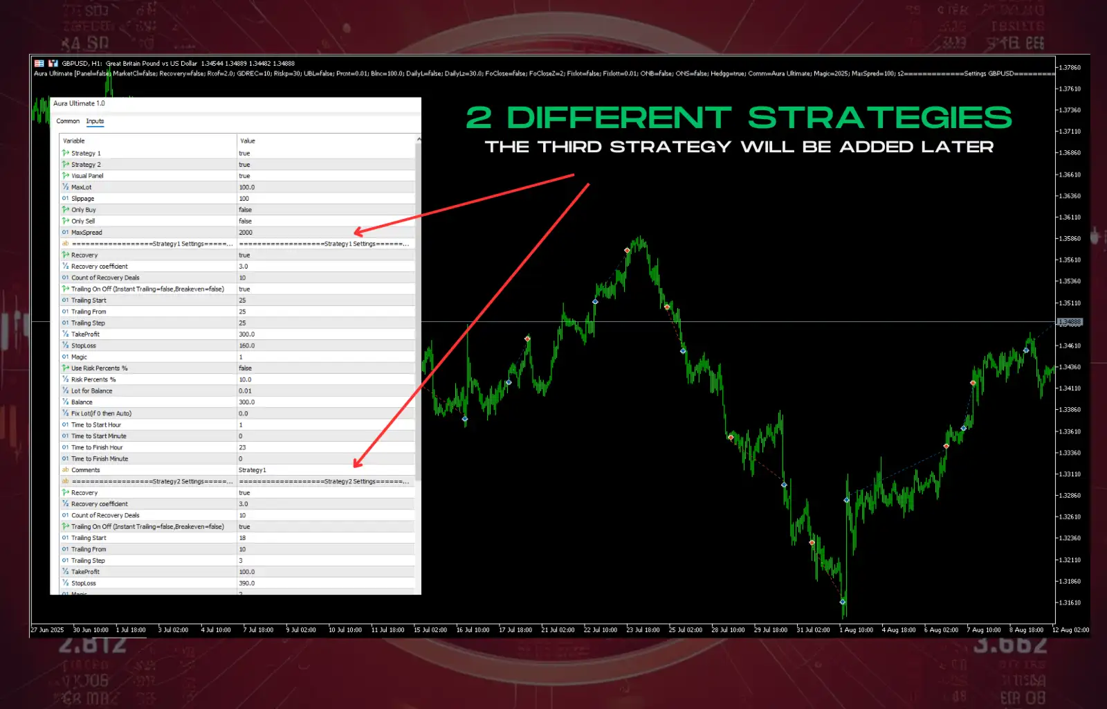 Aura Ultimate EA MT5 operates as a true multi-strategy trading system. It includes two fully independent and proven strategies running in parallel: one focused on trend-following logic and the other on breakout-based execution. A third expansion strategy is currently under development and will be integrated in future updates.