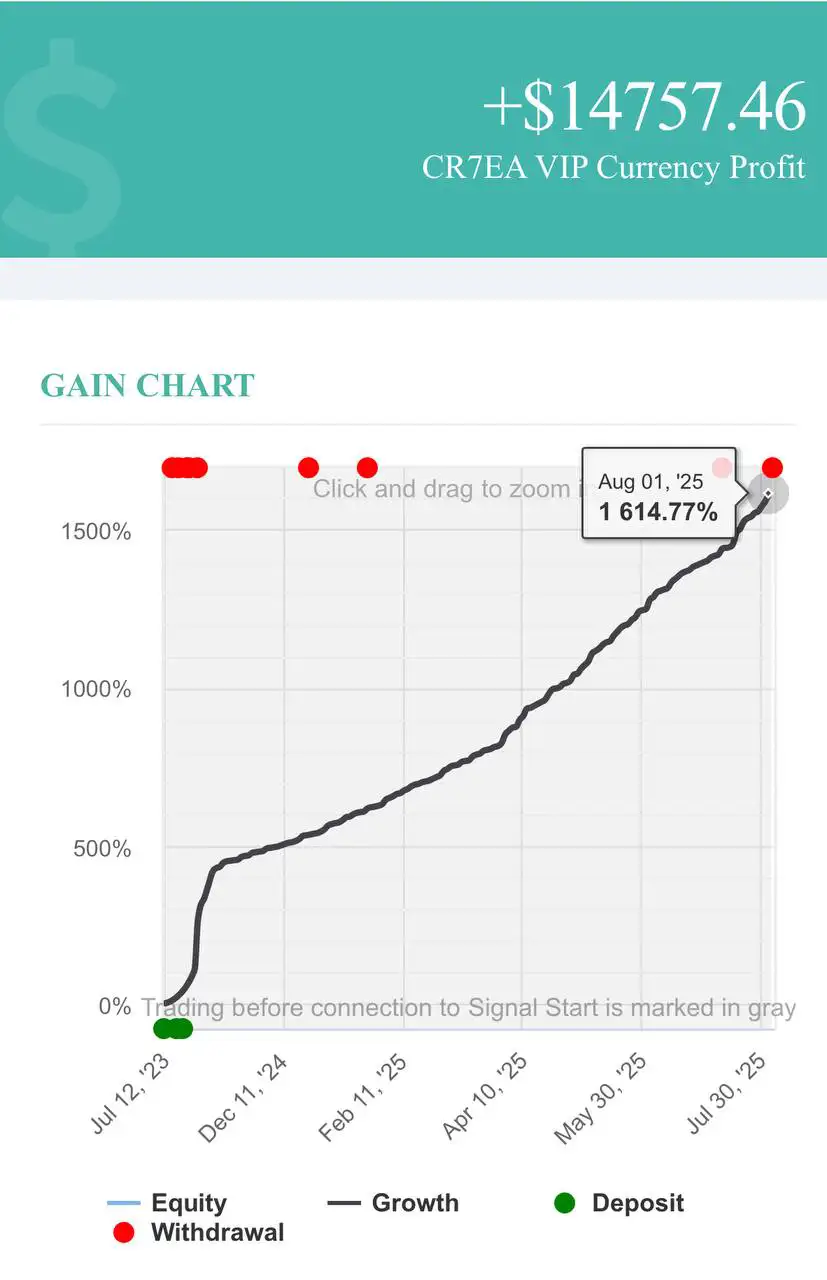 With its intelligent algorithm and lightning-fast execution, CR7 VIP EA MT4 ensures optimized gold trading performance, even during high volatility.