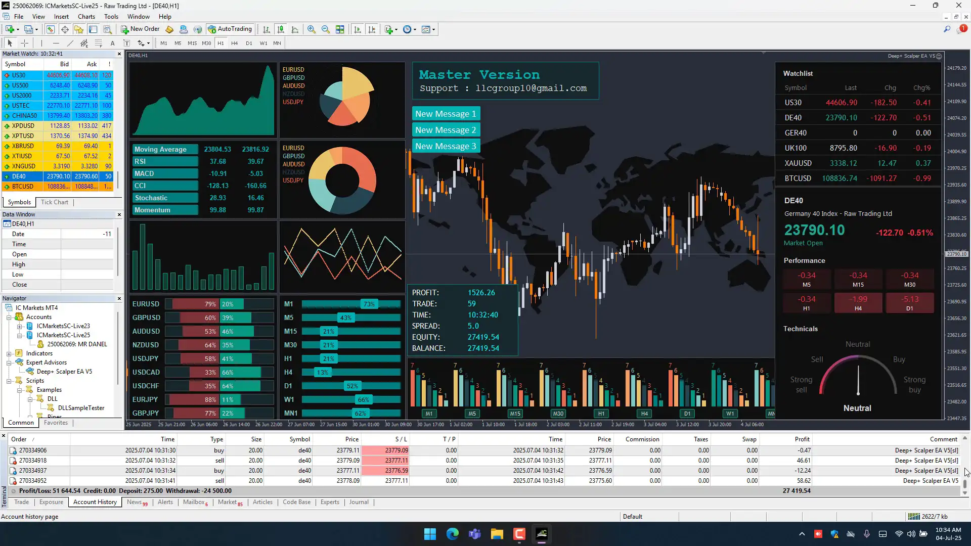 Built using an advanced algorithmic architecture, Deep+ Scalper EA adapts to real-time market behavior using a self-regulating engine and a global command system that ensures consistent optimization without manual updates.