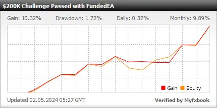 A standout feature of FundedEA DELUXE is its strategic avoidance of risky strategies, resulting in a maximum drawdown of only 1.72%. This risk-conscious approach demonstrates a commitment to capital preservation and safeguarding trading portfolios. The nuanced design of FundedEA DELUXE reflects a dedication to optimizing performance within the dynamic landscape of proprietary trading, with a primary focus on effective risk management and resilience.