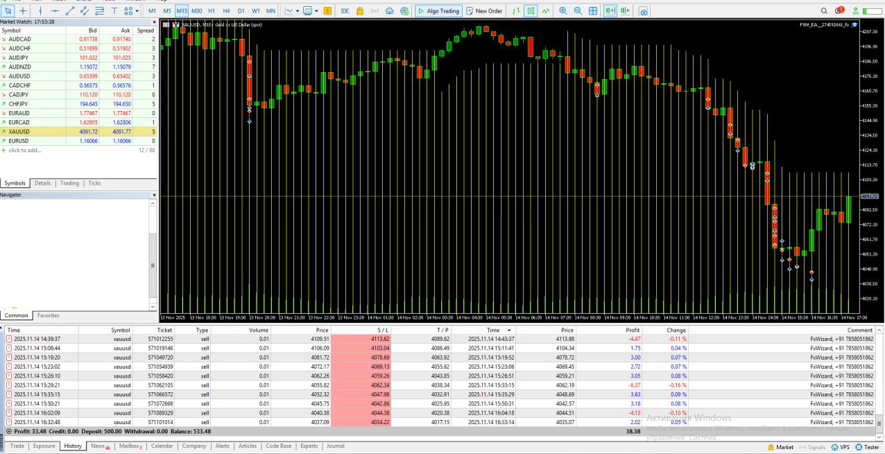FX WIZARD EA MT5 stands out as a smart, stable, and precision-focused Expert Advisor engineered for XAUUSD trading on the M15 chart. With advanced automation, strategic risk management, and reliable equity protection, it provides traders with a safe and predictable method to grow their accounts using professional trading logic.