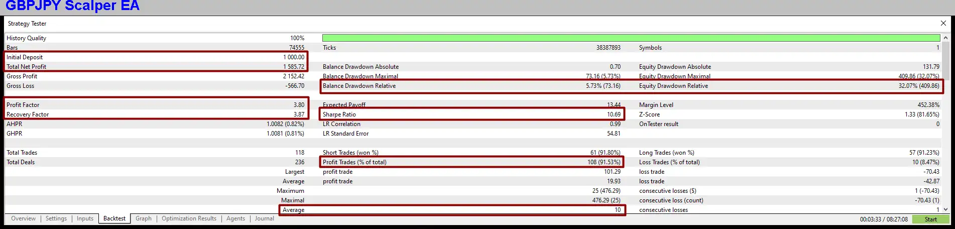 Backed by real tick data, GBPJPY Scalper EA has been rigorously optimized and tested for real-world trading conditions. Expect accurate backtests and reliable live results.