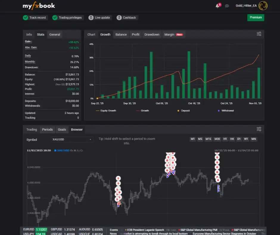 This disciplined, rules-based system makes Gold Hitter EA MT4 one of the most stable automated gold EAs on the market.