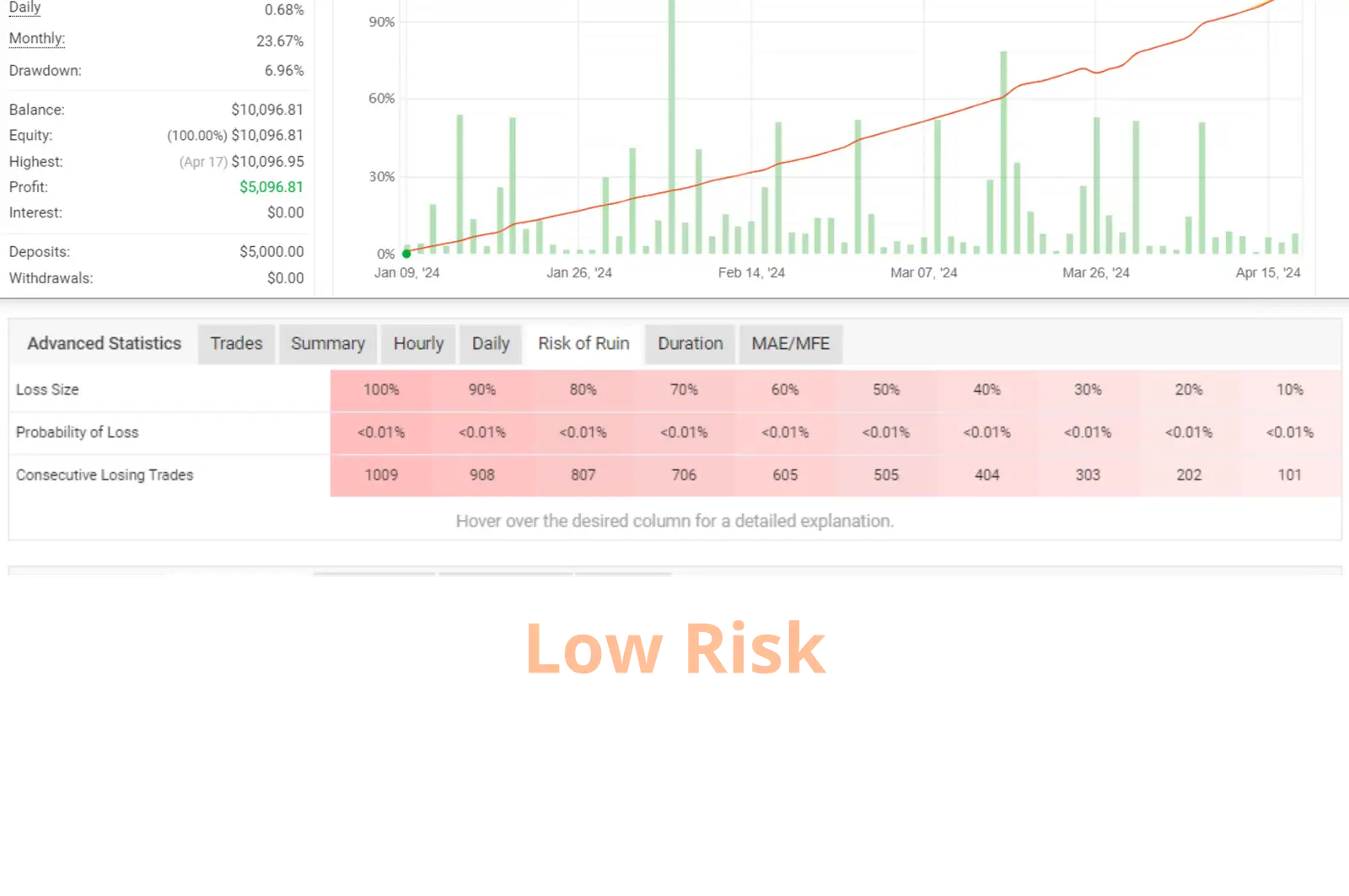 - Less than 5% drawdown