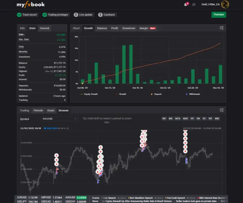 This disciplined, rules-based system makes Gold Hitter EA MT5 one of the most stable automated gold EAs on the market.