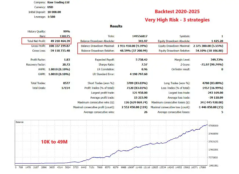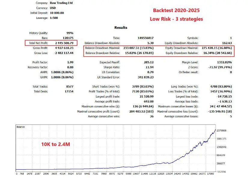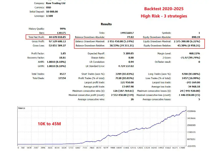 - Flexible Risk Levels: Whether you prefer low-risk conservative trading or high-risk aggressive strategies, this EA adapts to your style.