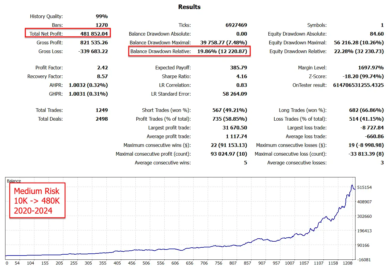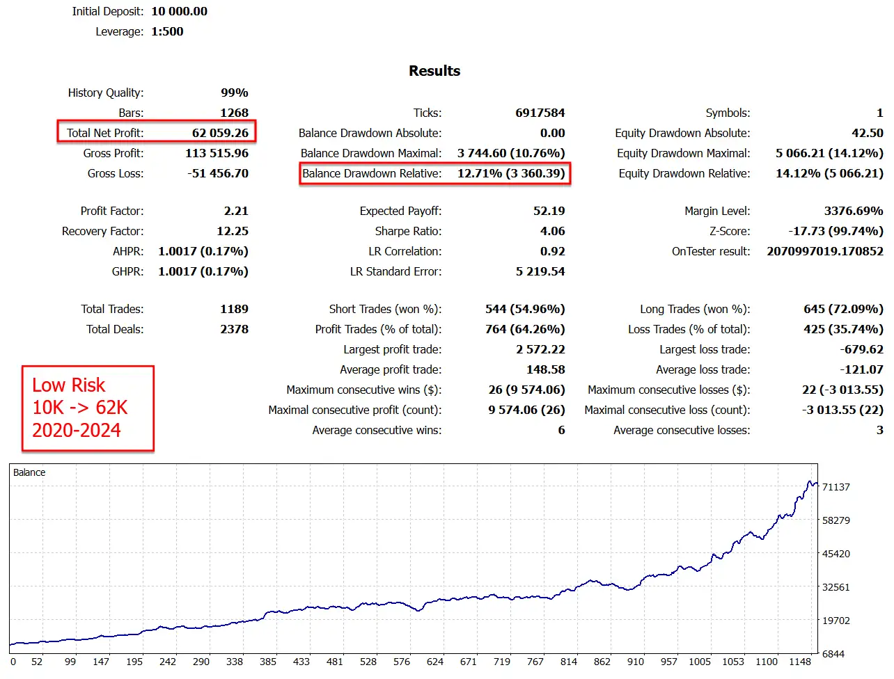 The EA automatically adapts to gold’s current market value, ensuring that no manual re-optimization is needed, even as gold prices rise or fluctuate dramatically. This smart adaptability keeps performance consistent across different price cycles.