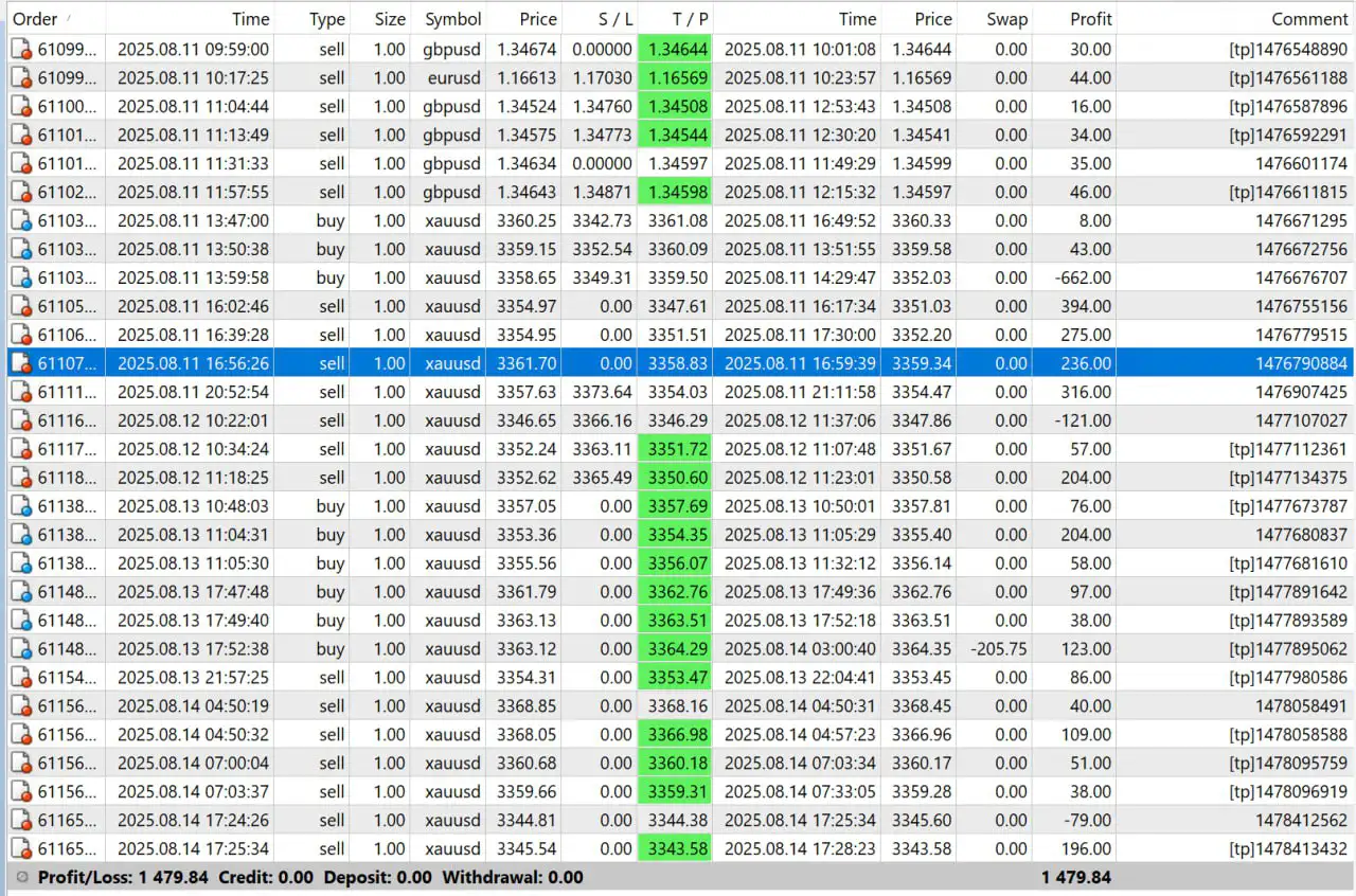 - Pairs: XAUUSD, EURUSD, GBPUSD