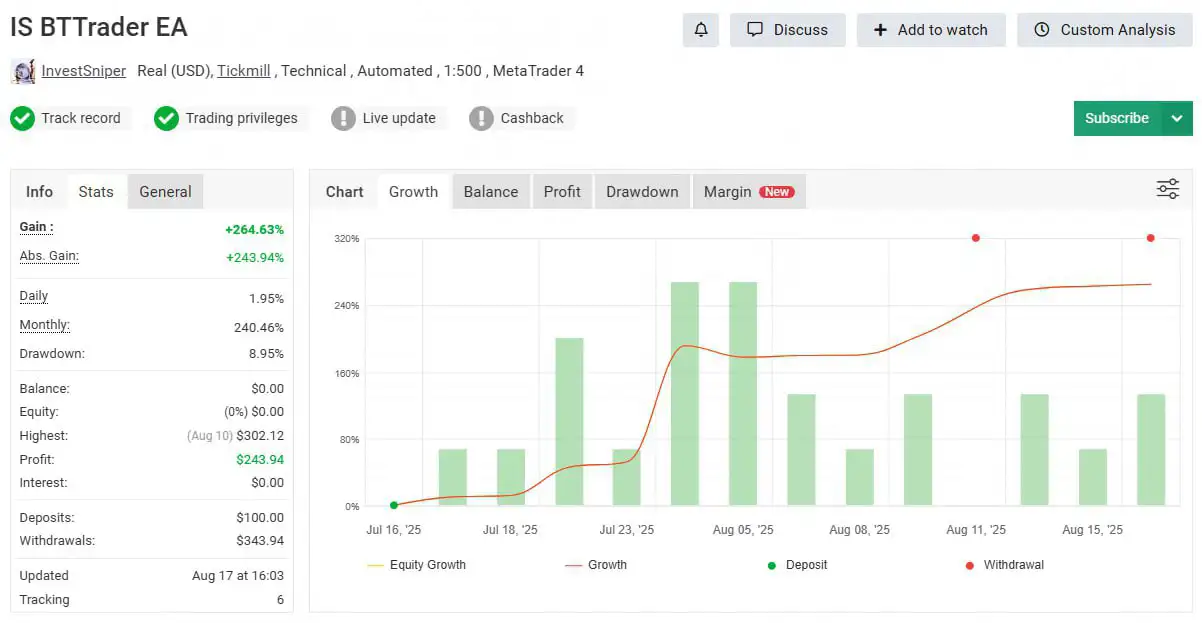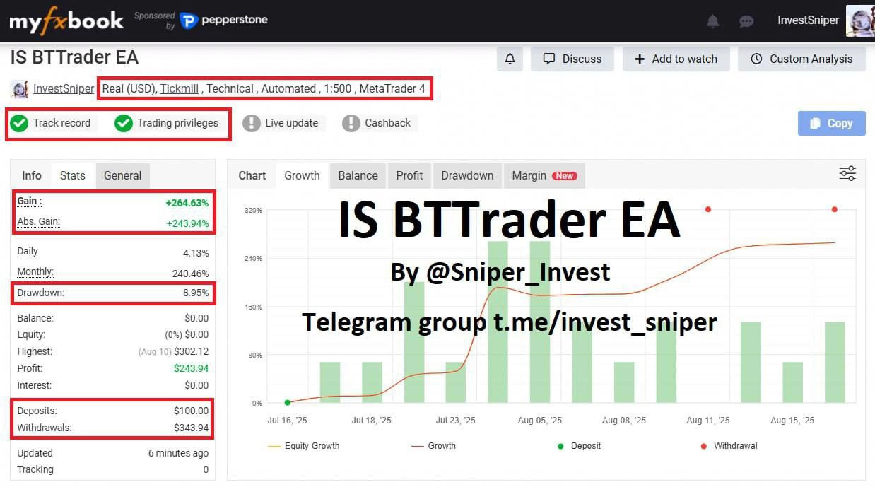 With proven results of +264% monthly profit and just 9% drawdown, IS BTTrader EA MT4 provides a powerful yet safe trading solution for both beginners and professionals.