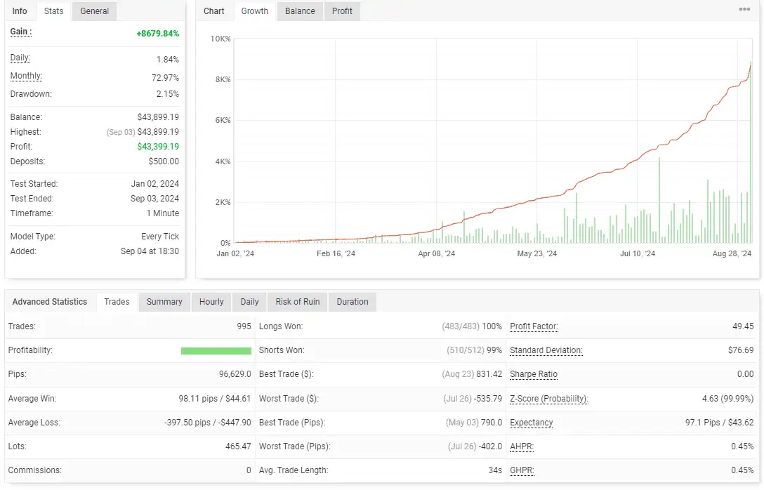 - Optimized for Gold Trading: Exclusively developed to trade XAUUSD, taking advantage of gold’s high volatility for consistent returns.