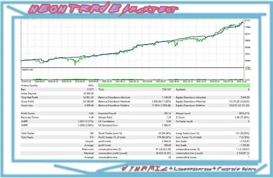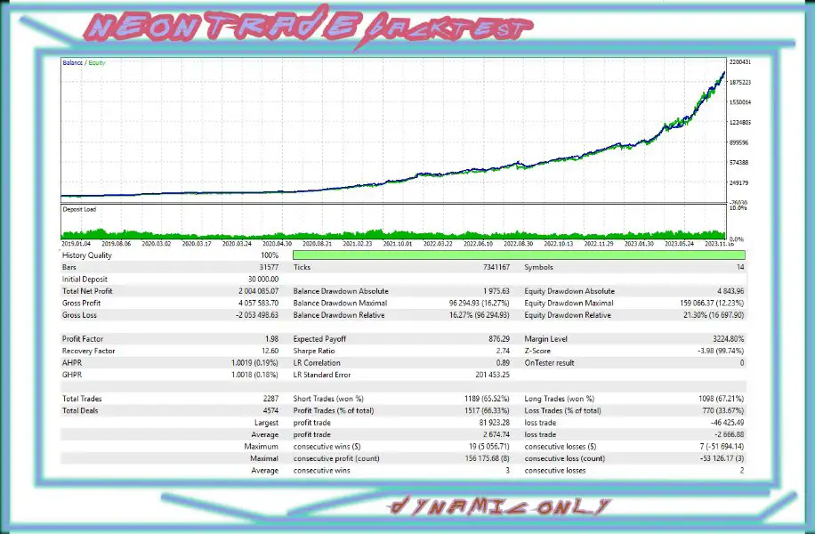 Introducing Neon Trade MT4 – an innovative algorithmic trading advisor utilizing advanced machine learning to revolutionize the currency market trading experience. Our fully autonomous advisor is ready for immediate use after installation on any chart and timeframe. It follows a “set it on the chart and forget it” principle. Simply allow access to our API at “https://xmpp.madsysadm.ru” in your terminal settings and switch to DYNAMIC mode. The advisor will handle the rest.