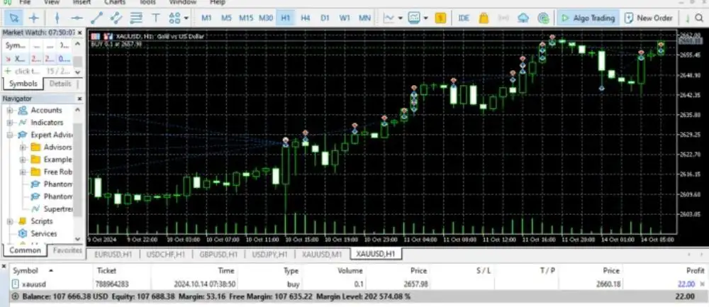 Phantom X MT5 is a precision-engineered Expert Advisor (EA) designed for traders who want to automate their strategies on the powerful MetaTrader 5 (MT5) platform. Built with efficiency and adaptability in mind, Phantom X MT5 excels in trading XAUUSD (Gold) and major currency pairs such as EURUSD, GBPUSD, and USDJPY—making it a solid tool for serious traders.