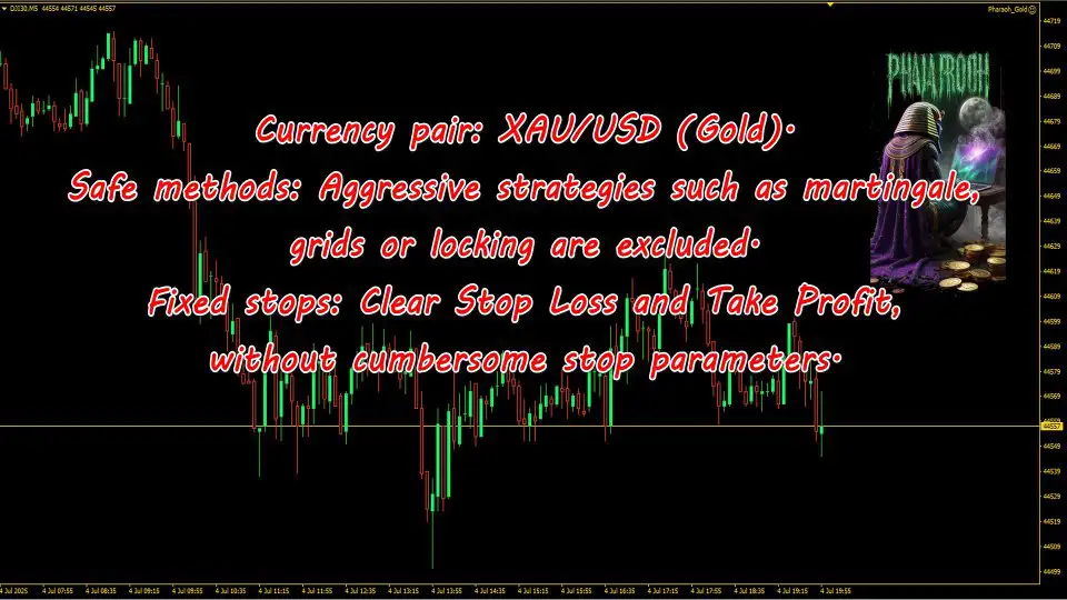 Unlike conventional EAs, Pharaoh Gold MT4 uses pending orders aligned with the trend, ensuring faster reaction to price movements and maintaining stability even in volatile conditions.