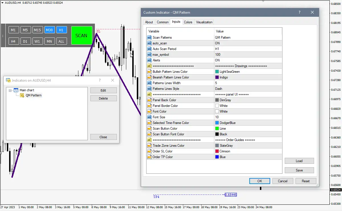 The indicator identifies Quasimodo Pattern QM on MT4 charts, enabling traders to spot opportunities without manual charting. - Demo Version Availability