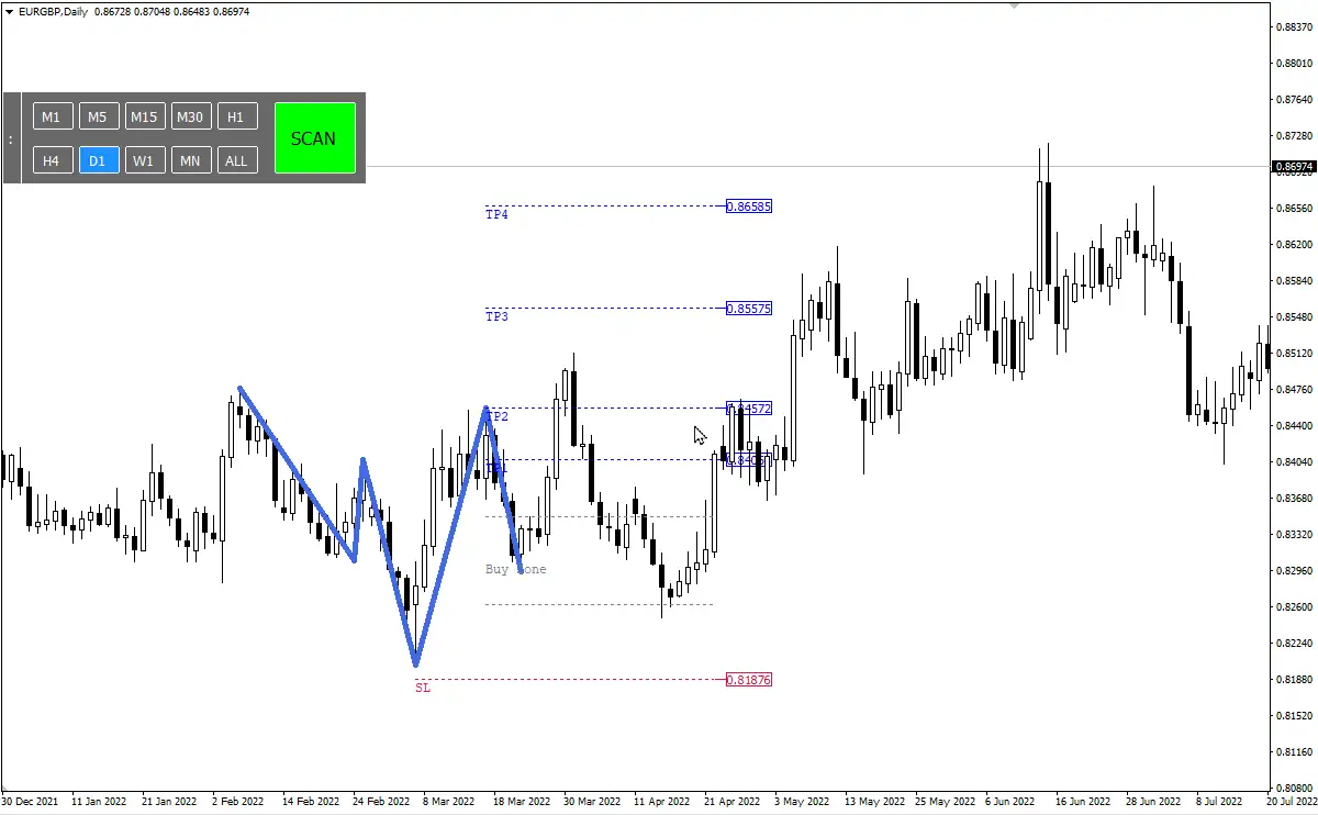 - Automation: Automatically scans charts for Quasimodo patterns.