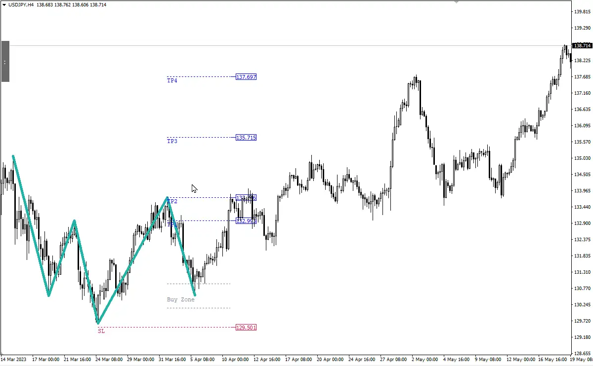 - Use the supply and demand zone at the left shoulder level as the entry point.