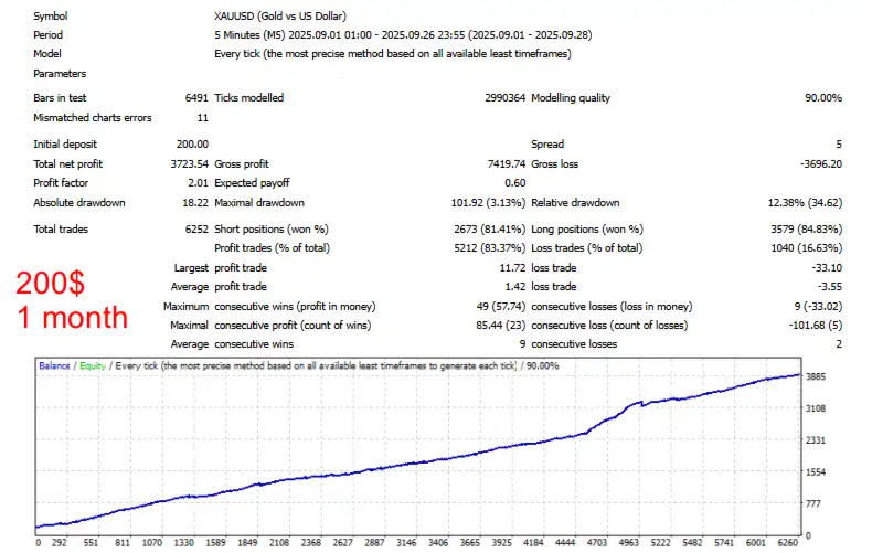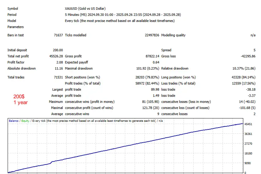- Optimized for Gold (XAUUSD) on the M5 timeframe