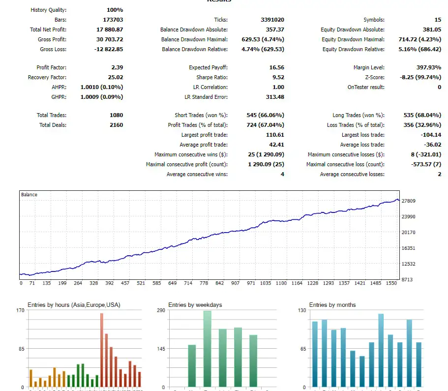 Conduct thorough backtesting on the M5 timeframe, evaluating performance across all symbols concurrently (MT5 version only).