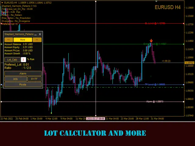 • Manage your risk and lot size automatically using the built-in calculation tools.