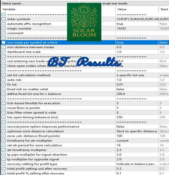 Backtesting Solar Bloom MT5 on CHFJPY showcases: