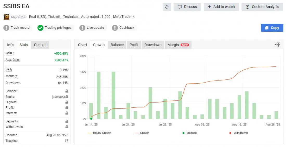 Unlike many risky robots that use grid or martingale systems, the SSIBS EA MT4 focuses on safe and sustainable trading. Verified on MyFXBook, it provides transparency and trustworthiness for traders of all levels.