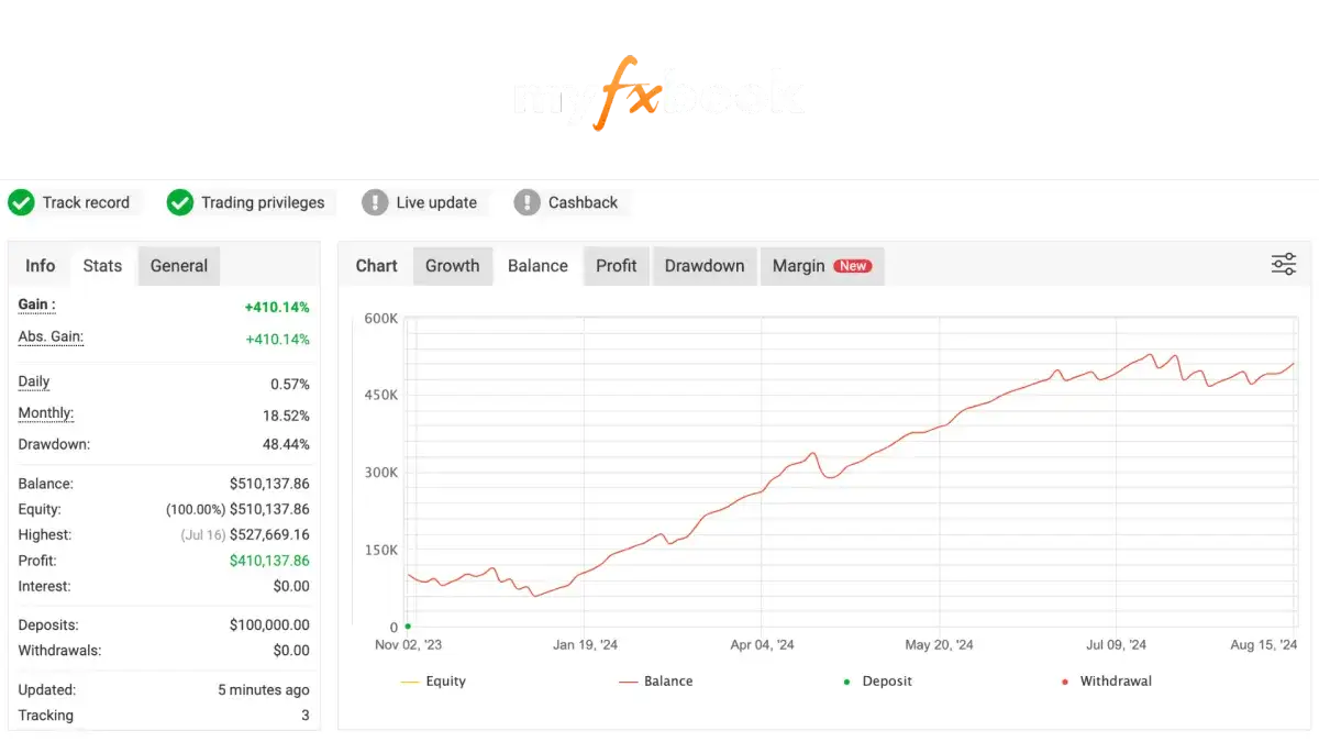 TradePilot EA has demonstrated exceptional performance in live accounts: