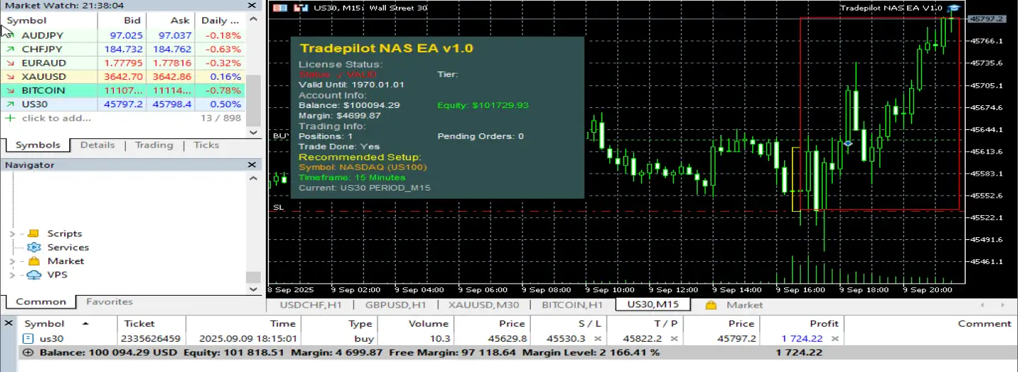 The TradePilot NAS EA MT5 is more than just a trading bot—it’s a smart, safe, and professional scalping solution for NASDAQ traders. With its advanced automation, optimized risk management, and rejection of risky Martingale/Grid systems, it’s an ideal choice for traders seeking steady returns with reduced risk.