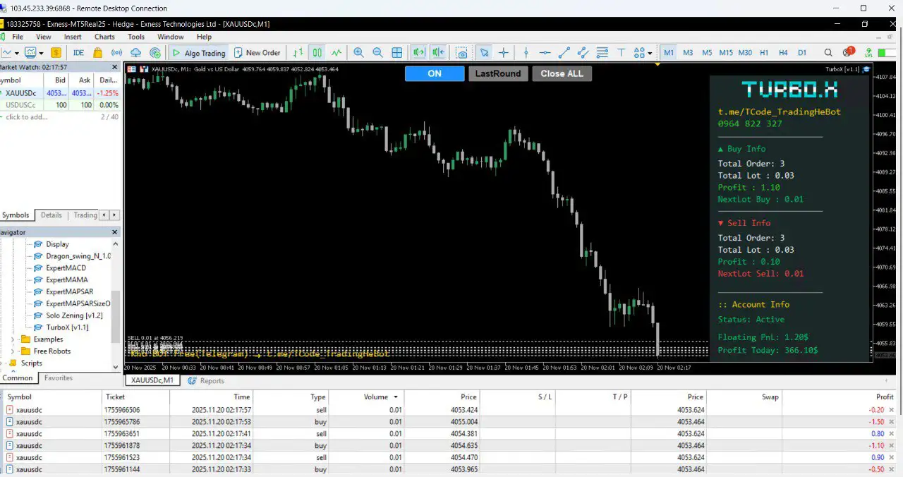 TurboX MT5 introduces a new era of ultra-aggressive automated trading. With its advanced multi-mode strategy switching, ATR volatility tracking, smart hedging, and real-time dynamic balance recalculation, it offers one of the most powerful MT5 trading solutions available today.