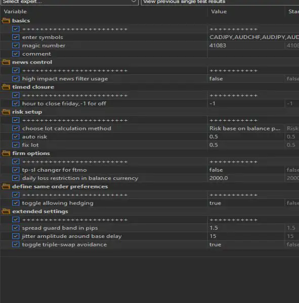 Ultra Pure MT5 handles 15 pairs simultaneously, but you only need to attach it to one chart (CADJPY M15).