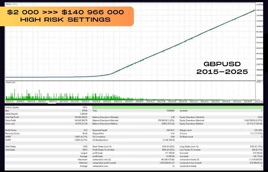 Past performance does not guarantee future results. No trading system is immune to losses. Backtests and historical performance are for illustration purposes only. Always apply proper risk management and test the EA on a demo account before deploying it live.