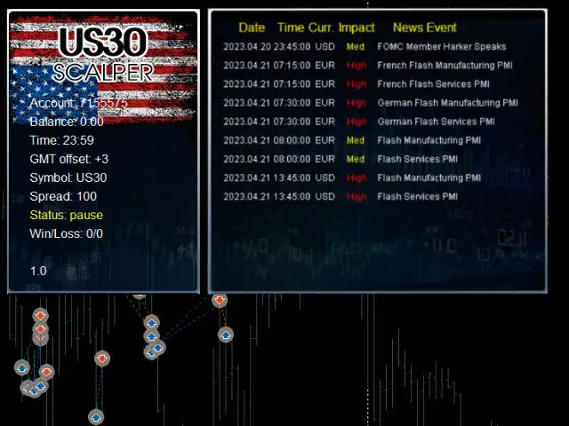 Unlock the potential of Wall Street Scalper MT4, a cutting-edge scalping robot powered by Artificial Intelligence. Tailored for high-frequency trading on the renowned US Wall Street 30 index (US30).