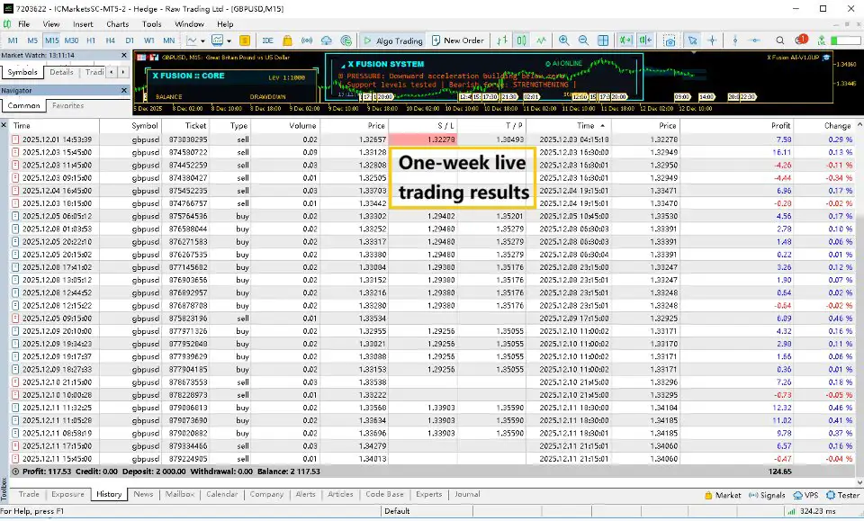 X Fusion AI MT5 is designed for structured, medium-frequency trading with controlled exposure and disciplined execution.