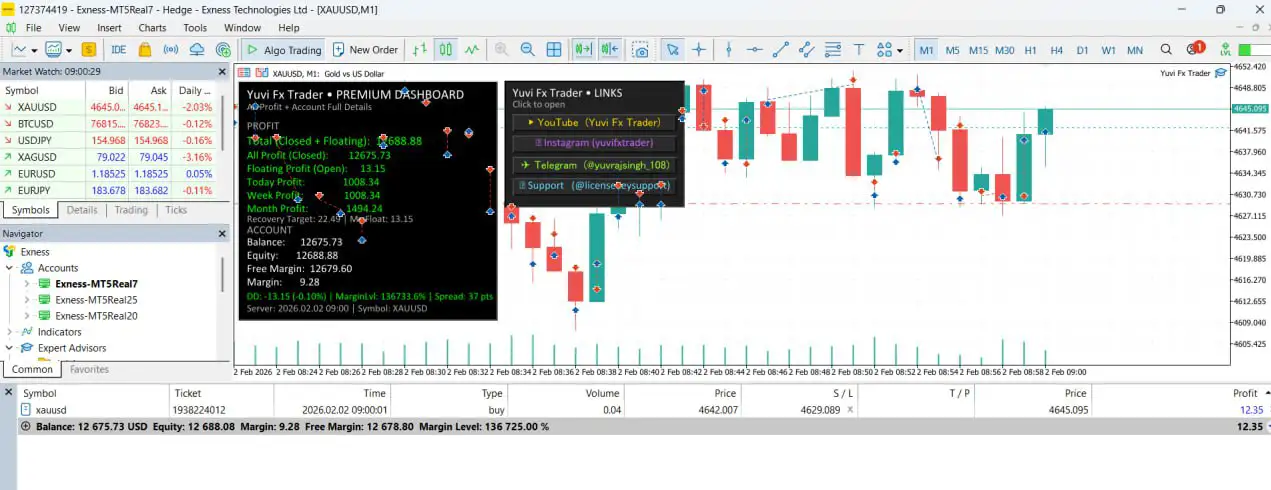 Gold is one of the most actively traded and volatile instruments in the Forex market, especially during high-liquidity trading sessions. Yuvi FX Trader EA MT5 is specifically optimized to handle these conditions by analyzing rapid price movements and responding instantly on the M1 timeframe.